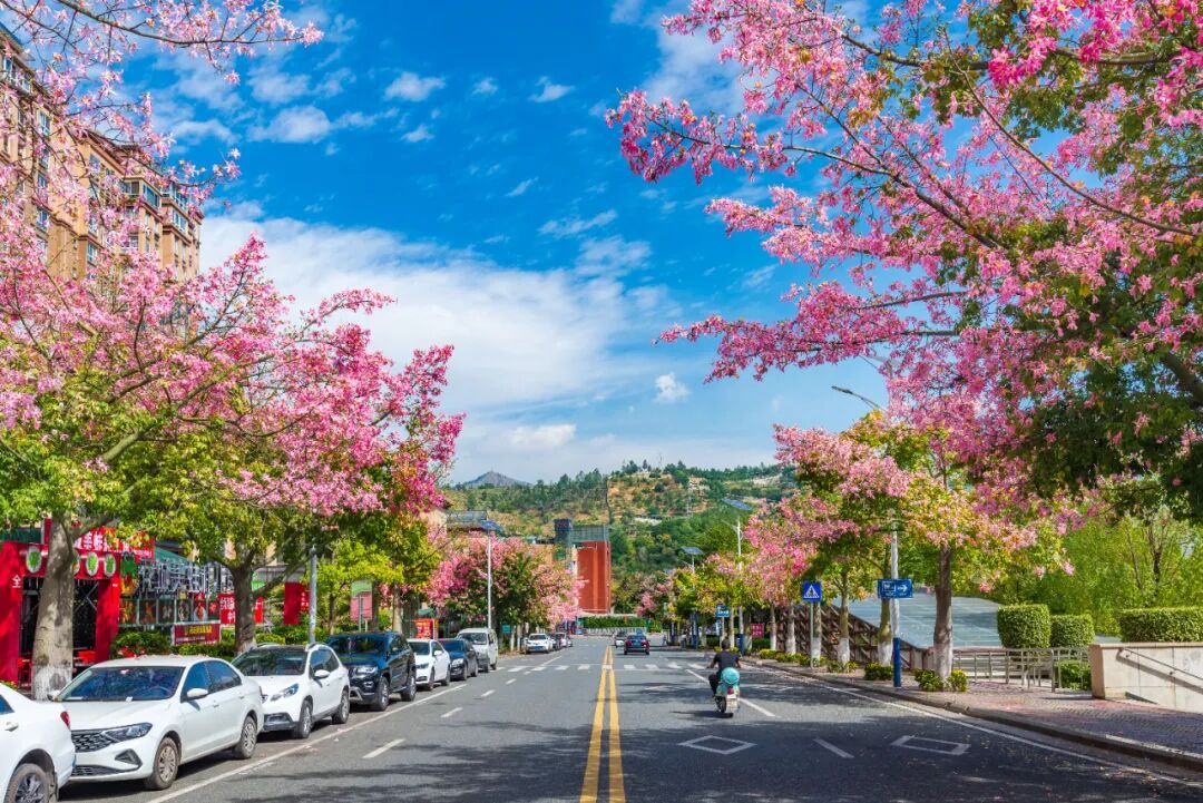 冬日异木棉盛放的街道 石磊摄